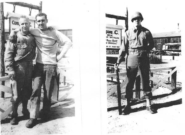 | Trio from C Co 263d Engineer Combat Bn. Cp Van Dorn MS-1944. On the left is T/5 Milton Reeve |