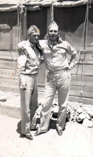 | On the left is Pfc Louis A. Polasek, B Company 255th Infantry Regiment. Date and place unknown |