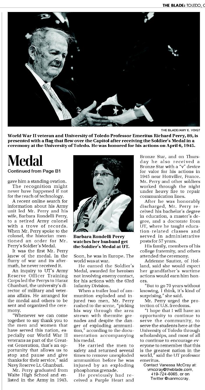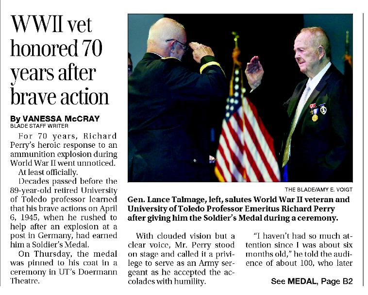 | Photos and newspaper article above, relate to Sgt Richard R. Perry, G Company 255th Infantry Regiment |