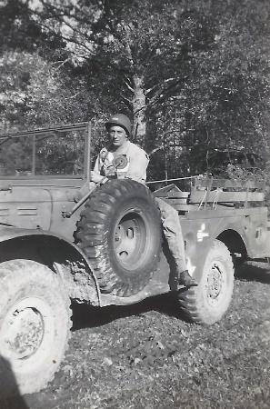 | Cpl James V. Short with his vehicle in the field. |