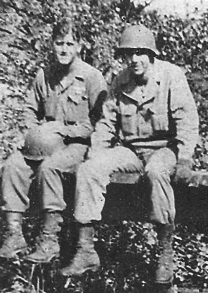 | Pfc Globel Curtis Grant, on the right, L and Hq Co 253d Infantry Regiment, 1945 Germany. Other soldier in photo was not identified. |