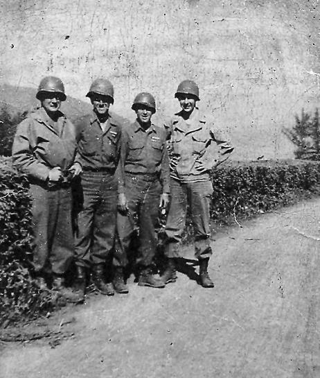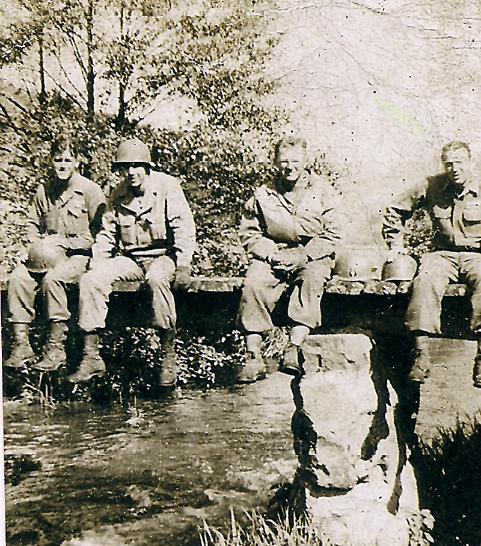 | Pfc Gobel Curtis Grant, 2d from the left, L and Hq Co 253d Infantry Regiment. Other soldiers in the photo were not identified. Germany 1945 |