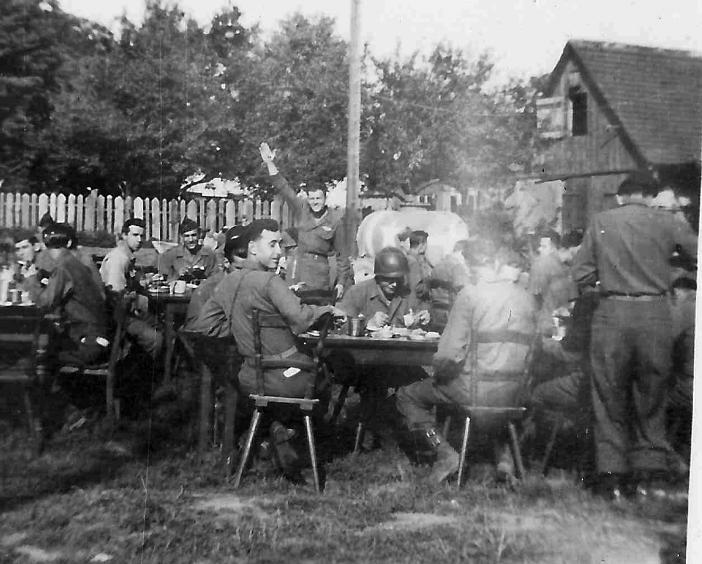 | Dining area for members of Service Company, 254th Infantry Regiment. Gernbrann, Germany 1945 |