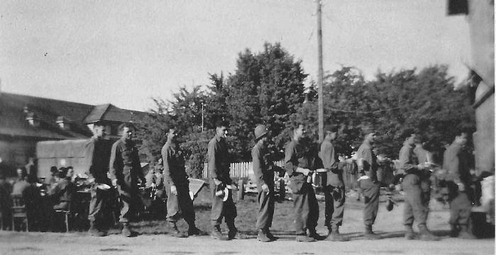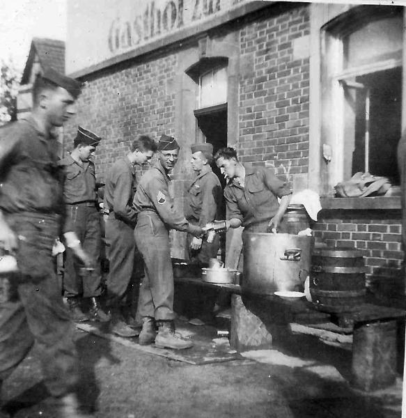 | Chow time with Service Company, 254th Infantry Regiment. Gernbonn, Germany 1945 |