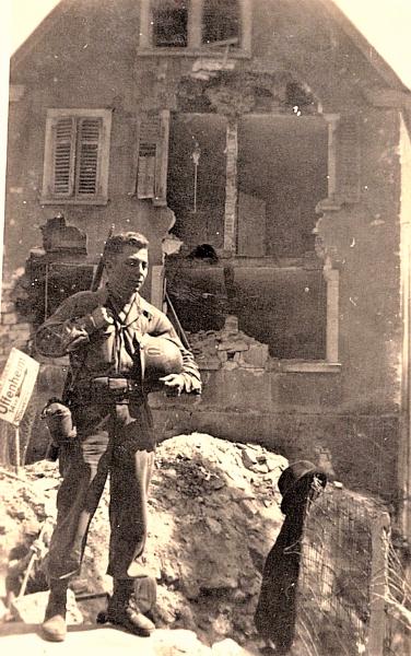 | Richard W. Craig, Jr., B Company, 776th Tank Battalion at the Siegfried Line. Photo submitted by his son, Michael R. Craig. |