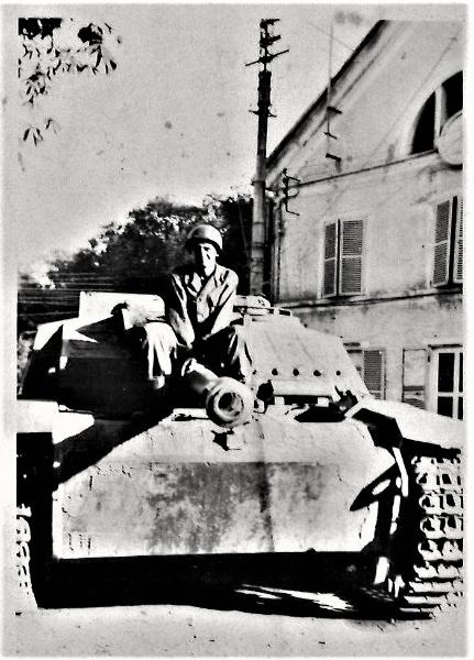 | Pfc James O. Maiura sitting on a tank. |