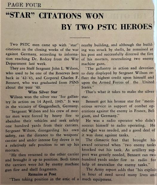 | S/Sgt John L. Wilson, D Company 254th Infantry Regiment. Photo submitted by his daughter Nancy Jensen. |