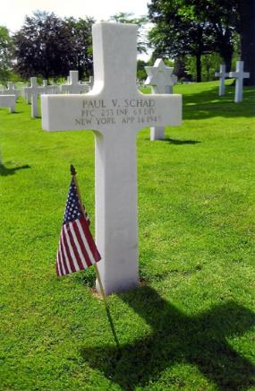 | Pfc Paul V Schad, E Company 253d Infantry Regiment. Wounded 15 Mar 45-Died of Wounds 14 Apr 1945. |