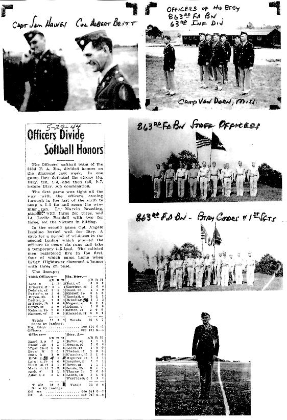 | The following page of photographs was extracted from the Memoirs of 1st Lt Marvin O. "Bud" Breeding, 863d Field Artillery Battalion. |