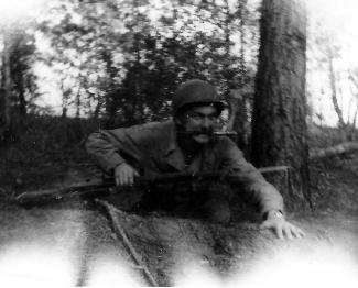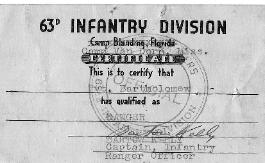 | The following photographs were furnished by Sgt Robert J. Bartholomew (later an Officer), Headquarters Company, 63rd Infantry Division (Ranger Platoon). Sgt Bartholomew was in the Ranger Platoon from its inception in July 1943 until it was disbanded in April 1944. He then left the division to go to OCS and served in the 81st Infantry Division and the 11th Airborne Division in the occupation forces of Japan. Go to Miscellaneous Photos Page 115 for additional photos of the ranger platoon soldiers and area. |