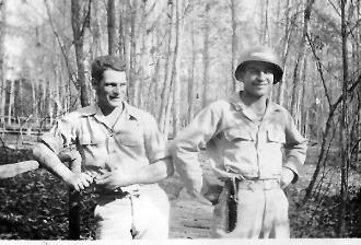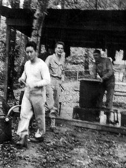 | Sgt Robert J. Bartholomew and Sgt Frederick A. Lilliankamp in the 63rd Ranger Platoon bath area, Beaver Creek- 5 Dec 1943 |
