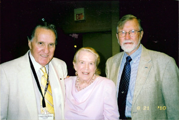 | L:-R: Pfc William G. McKeon, L/253d Inf, Mrs Anna Weber, widow of Frederick Weber L/253d Inf and Pfc Frederick Clinton, D/254th Inf at the 2010 August reunion in Fairborn, OH. |