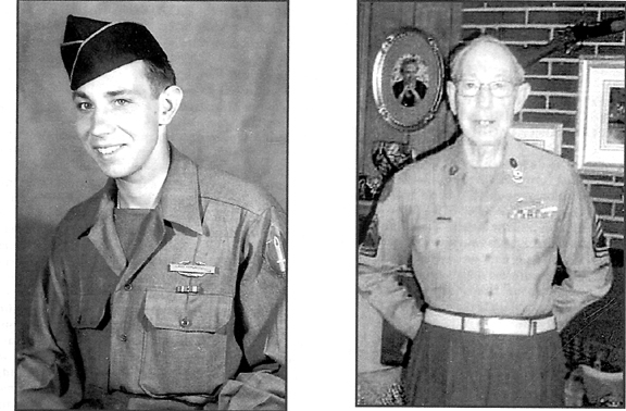 | Left Photo: T/Sgt Carl V. Anderson, E Company 253d Infantry Regiment, Paris France 8 May 1945. Right Photo: T/Sgt Anderson, Veterans Day 2010. |