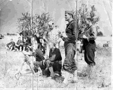 | Standing in the foreground is Cpl Frank Piontek (later Captain Piontek CO, D Company 254th Infantry Regiment). Date and place unknown |