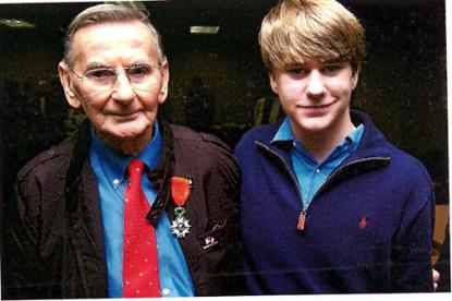 | Pfc John E. Rogalewicz, G Company 253d Infantry Regiment and his grandson John A. Bormolini after Pfc Rogalewicz receives the French Legion of Honor. January 2012 |