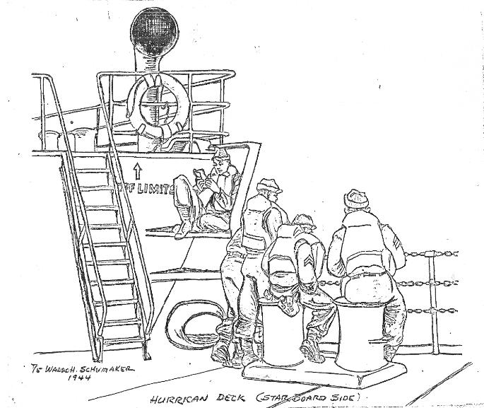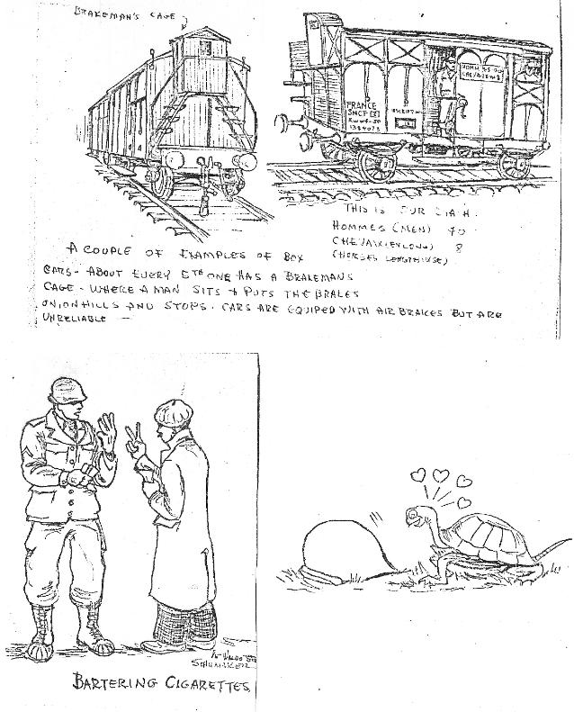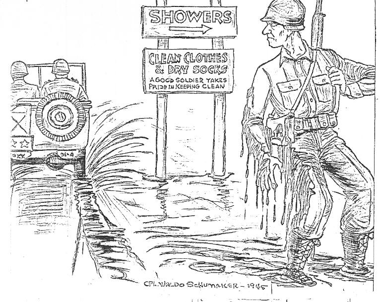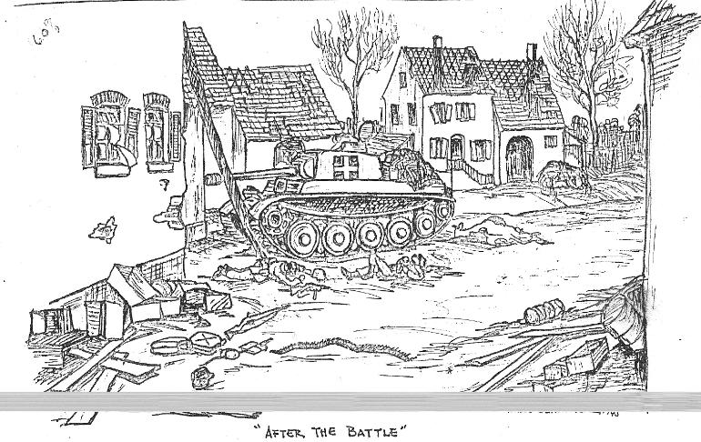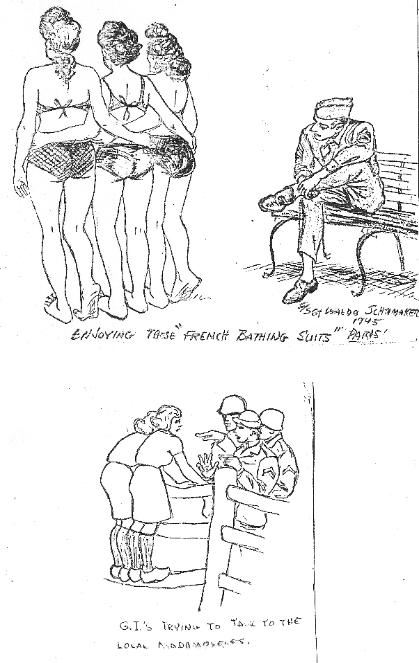 The following collection of WWII drawings were made by CWO(USAR-Ret) Waldo Schumacher, Cannon Company, 255th